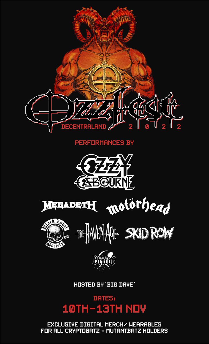 Good Afternoon! We are playing rock 'n roll @TheOzzFest Metaverse in @decentraland! It is free to attend so come and tune in loud on your laptop or smartphone.